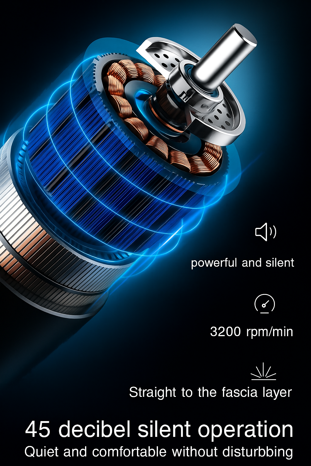 • Portable Design :The Portable Fascial Massage Gun is designed for easy handling and storage, making it perfect for on-the-go relaxation.